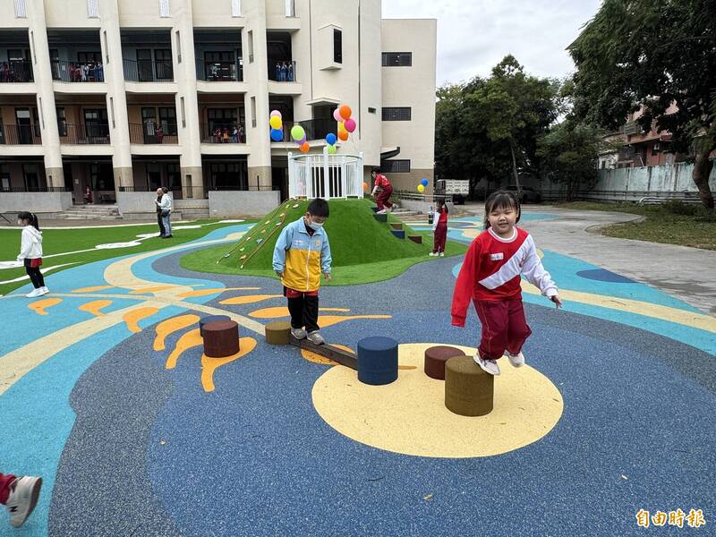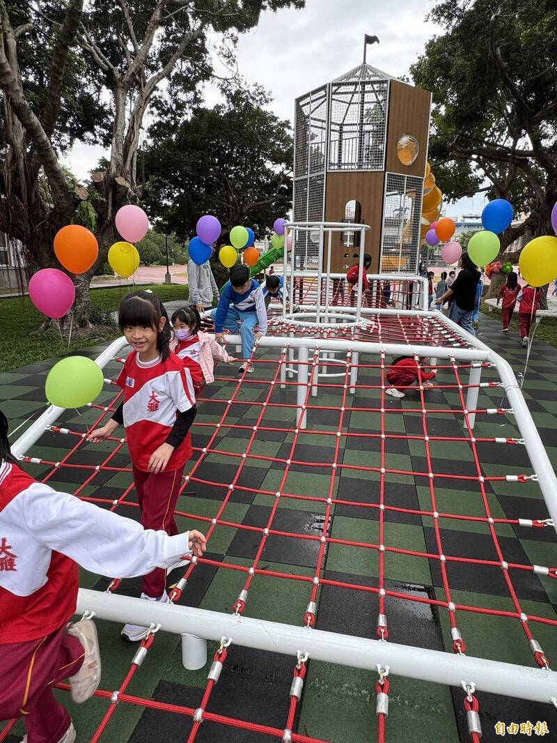 台中市大雅國小「天生幸福遊樂園」落成啟用,小朋友開心玩耍。(記者歐素美攝)
