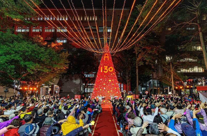 國北教大雙春金蛇年 火紅15米聖誕樹吸睛