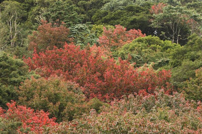 玉山國家公園塔塔加園區,秋冬季節天氣轉為乾冷,山區已展現楓紅景觀,尤其省道台18線沿路,可見轉色的紅榨槭鑲嵌山林,為滿山綠林增添「楓」情,預計12月中旬可達高峰。