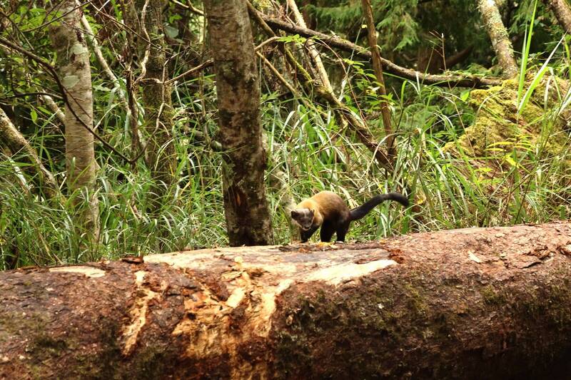 玉山塔塔加園區楓紅開跑,在園區步道也可見野生動物黃喉貂出沒覓食。(玉管處提供)