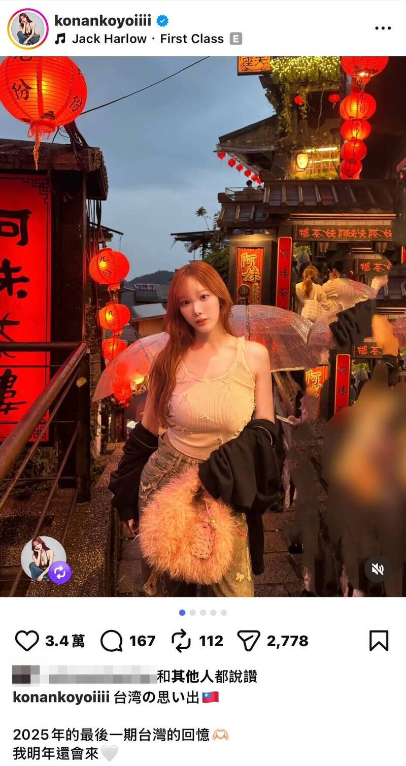 被譽為「神之乳」的日本AV女神小宵虎南近日在台灣現蹤!她還特地在社群分享自己到新北九份老街的美照,吸引數萬人按讚!