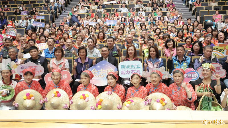新北市長侯友宜與金志獎獲獎志工單位合影。(記者黃政嘉攝)