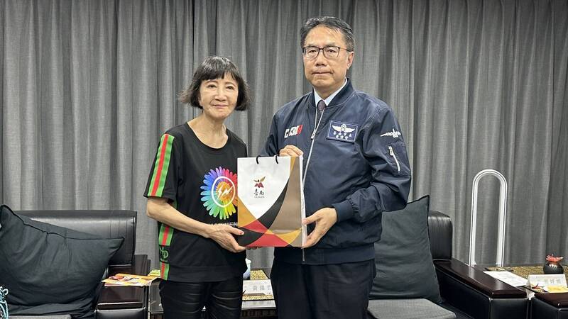 台南市長黃偉哲贈禮予日台商務促進會會長今角友美。(台南市政府提供)