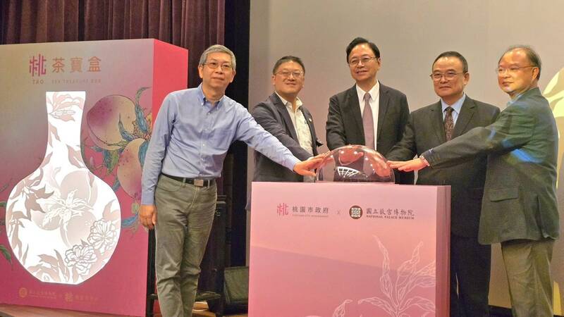 桃市府首度與國立故宮博物院攜手合作,推出「桃茶寶盒 TAOTEA TREASURE BOX」聯名禮盒,將桃園茶文化與典藏國寶「清 粉彩蟠桃天球瓶」巧妙結合,透過精緻紙雕設計與東方美人茶迷人茶韻,展現桃園茶文化與藝術美學結合的嶄新風貌,今(2)日上午於國立故宮博物院舉行「桃茶寶盒」聯名禮盒發表會,由桃園市長張善政與國立故宮博物院院長蕭宗煌共同揭幕。