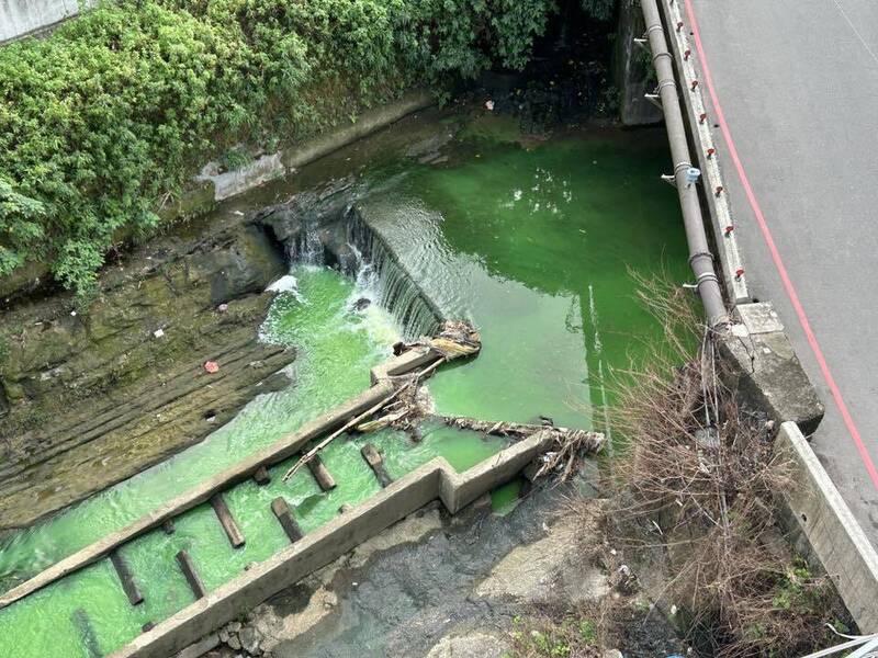 新店五重溪驚見螢光綠水一片 環局疑染劑或油漆導致 持續找污染源頭