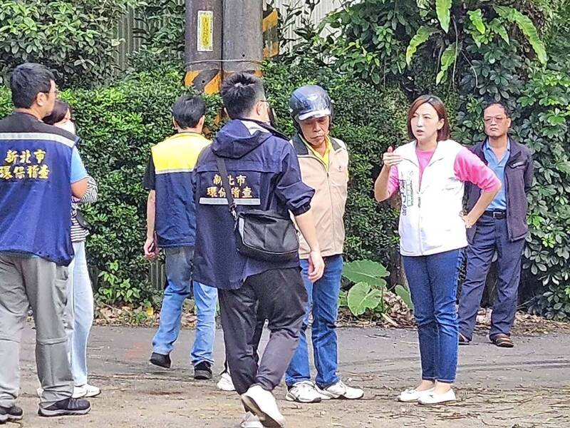 新北市議員陳乃瑜在日興里長廖景春帶路下,與環保局人員實地勘查。(翻攝自「陳乃瑜 美人瑜媽媽」臉書)