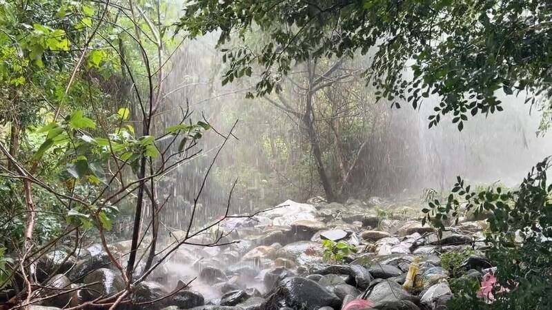 自來水從管線噴出,於橋下形成水瀑。(圖由徐裕逢提供)
