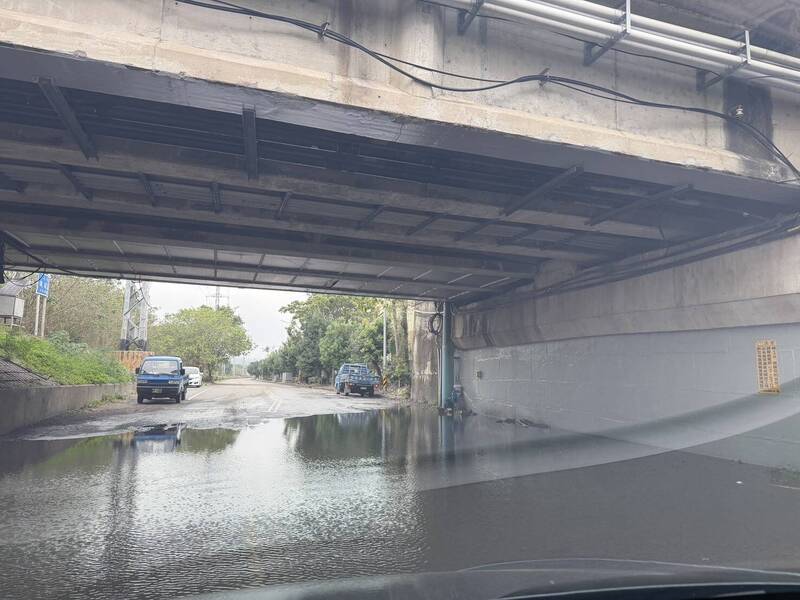 中平大橋下方瑞興街出現積水。(圖由徐裕逢提供)