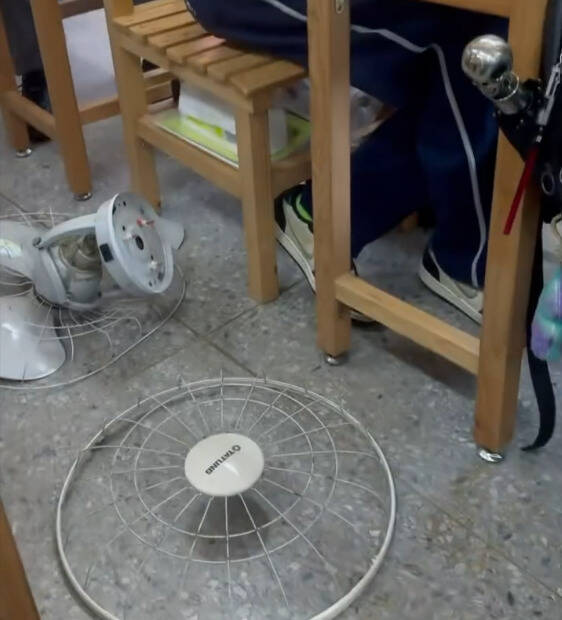 建中學生於Threads上分享,當時上課到一半,天花板上的電風扇就突然掉到地上,並且解體,讓在場學生嚇了一大跳。相關畫面曝光後,也引發許多網友討論,「我從國小擔心到高中的事終於發生了」、「勿因扇小而不維」、「扇離職守」、「危扇不欲人知」、「扇葉有沒有延切線射出」、「從吊扇變成掉扇」。