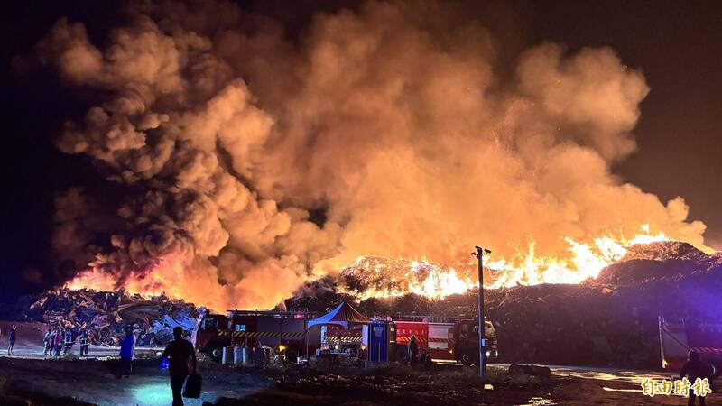 台南市後壁烏樹林丹娜絲風災廢棄物暫置場11月21日晚間發生大火場景驚人。(資料照,記者楊金城攝)