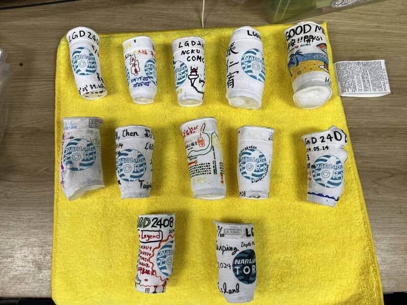 保麗龍杯必須塞海綿,被深海壓縮後,才能成為完美的迷你杯。(國家海洋研究院提供)