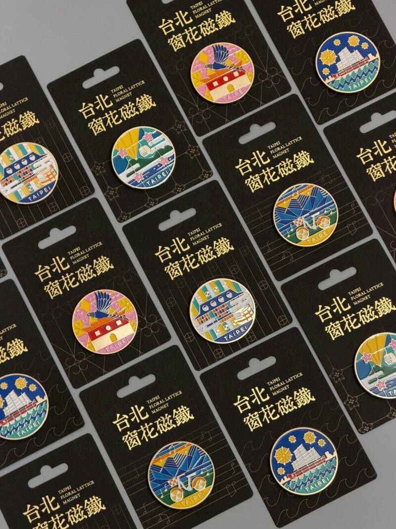 台北市全新城市紀念品「窗花磁鐵」系列出爐,整體設計以台北街弄中常見的「窗花」圖案結合景點,特別運用手工入色,推出富含文化美感的5款特色磁鐵。(圖由北市觀傳局提供)