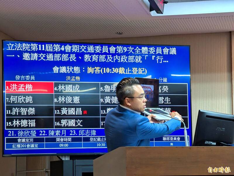 洪孟楷今天要求交通部額外再增設路跑和自行車賽事的地方保留名額。(記者吳亮儀攝)