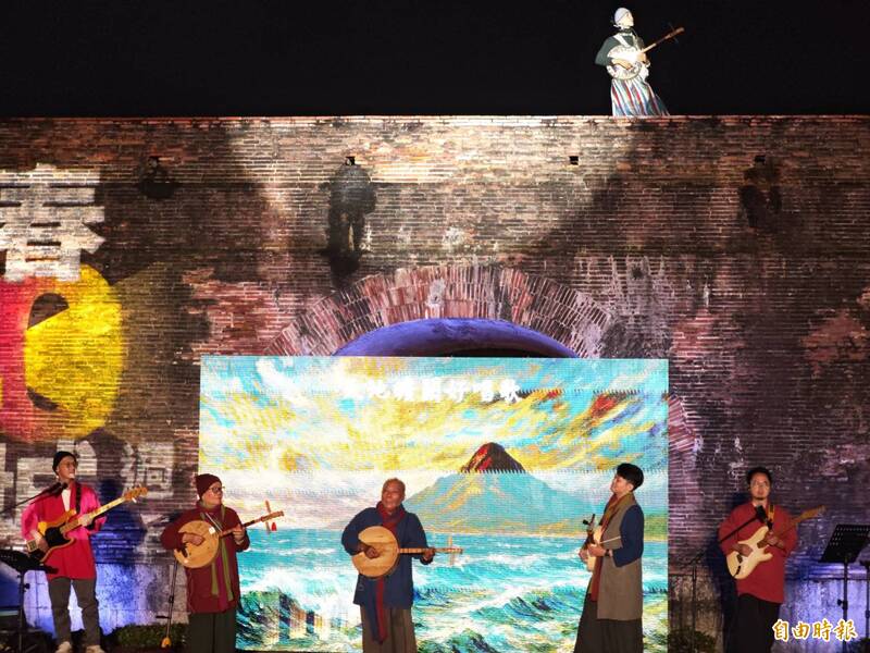 今天下午天公不作美,約3點左右開始下起間歇雨勢,但恆春半島人期盼多年的文化中心正式落成,雨勢澆不息藝文人士熾熱的心,晚間活動從4座城門同時開演揭開序幕,主舞台在東門登場,由金曲歌手戴曉君領軍,結合傳藝師、新生代藝生與牡丹 Puljimu 部落古謠隊,以跨世代共演,用歌聲串起恆春建城150年的歷史節奏,將現場氣氛推向最高潮。
