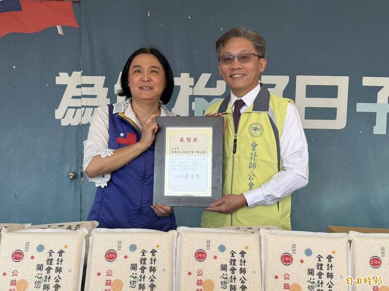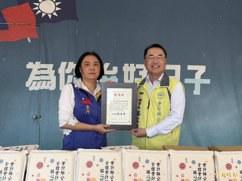 台灣省會計師公會與台北市會計師公會今天跨海金門,在國民黨金門縣黨部協助下,將2000包白米送給金門弱勢家庭,盼在歲末寒冬之際,帶來實質的支持與溫暖。