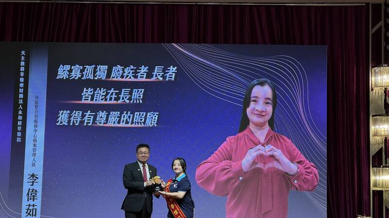 新北市長照獲獎人員李偉茹,服務於天主教耕莘醫療財團法人永和耕莘醫院。(衛生局提供)
