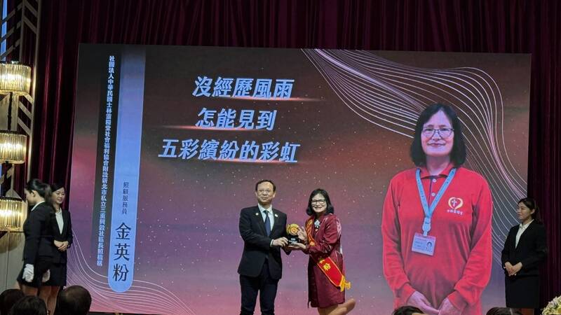 新北市長照獲獎人員金英粉,服務於社團法人中華民國士林靈糧堂社會福利協會附設新北市私立三重興穀社區長照機構。(衛生局提供)