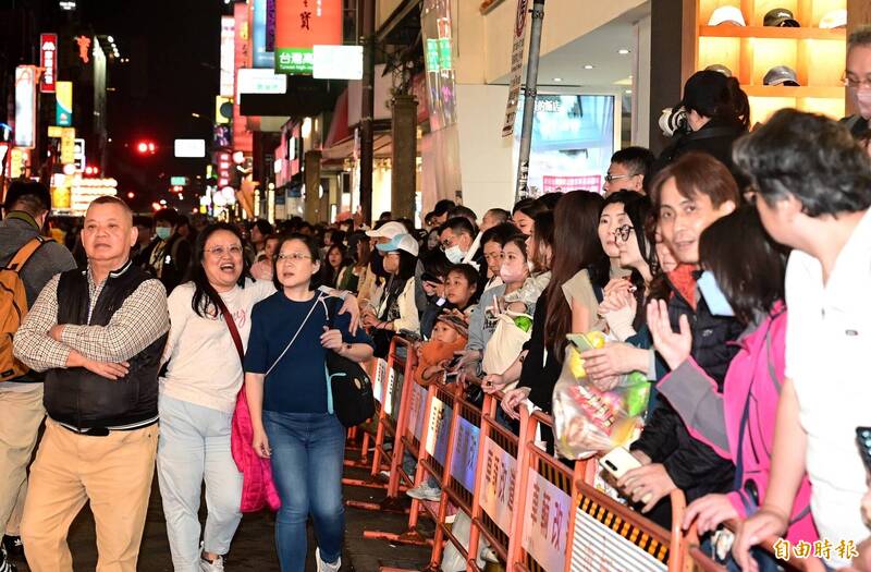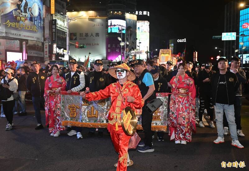 青山王祭今(10)在西門町規畫「藝文紅壇展演區」,吸引許多民眾參與,擠爆西門商圈。(記者王藝菘攝)