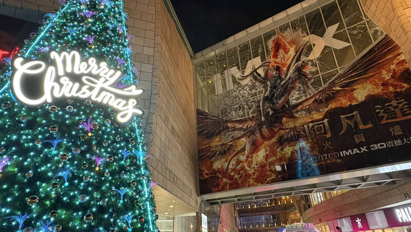 美麗華百樂園則有阿凡達星願聖誕樹,融合電影元素打造主題聖誕樹。(北市商業處提供)