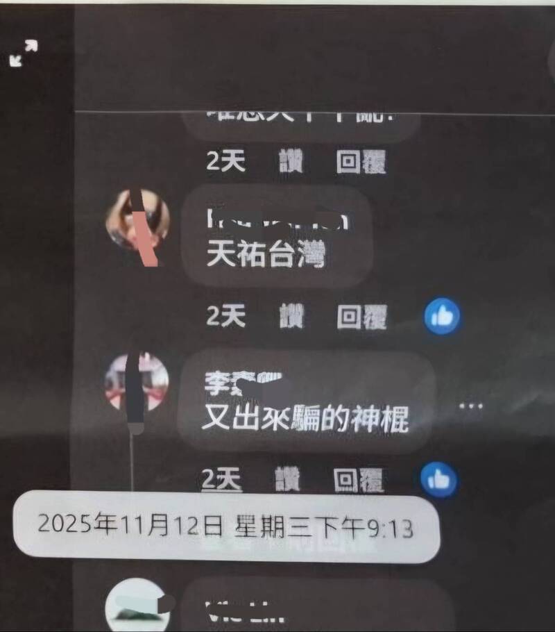 李姓女網友在網路留言,指廖大乙是「又出來騙的神棍」。(廖大乙提供)