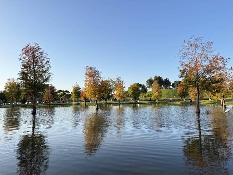 而南屯文心森林公園的落羽松也在11月開始換色,搭配園區寬闊草坪與步道景致,讓民眾能優閒散步、放鬆身心,享受秋冬限定的城市風景。