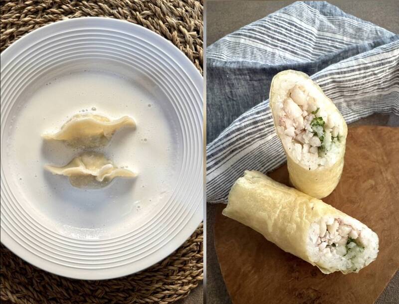 菱角創意料理雙角濃湯及香菱壽司。(鹿草鄉公所提供)