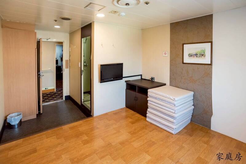 「基隆-石垣島」航線由YAIMAMARU渡輪載客,家庭房4人通鋪。(圖由華岡集團提供)