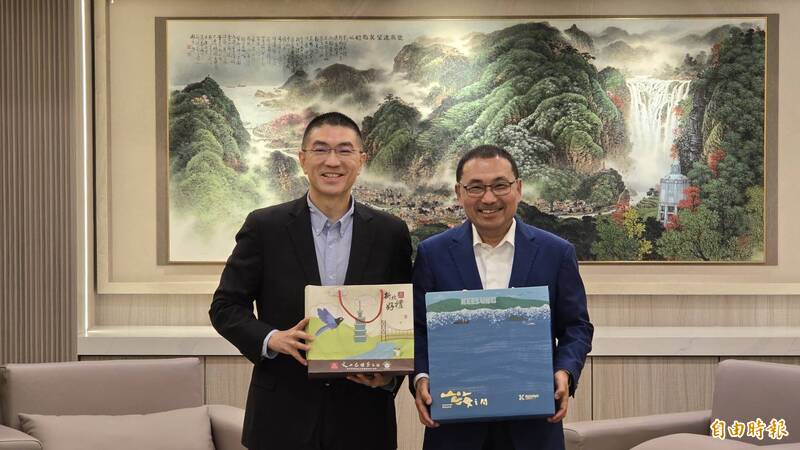 基隆市長謝國樑今(17)日率市府團隊赴新北市交流都市更新等相關經驗,新北市長侯友宜分享都更三箭等政策。(記者黃子暘攝)