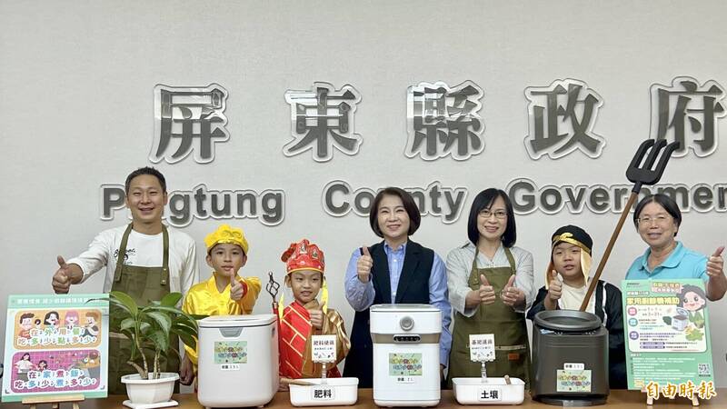 屏東縣長周春米(中)17日宣布,明年度屏東縣家用廚餘機1月1日起至3月31日受理申請。(記者羅欣貞攝)