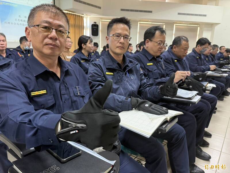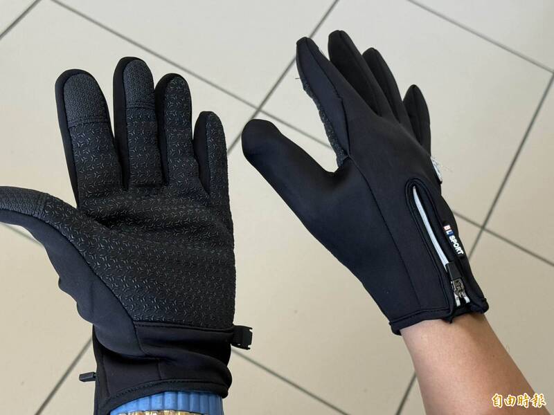 員警們戴上保暖手套直呼「暖心」。(記者湯世名攝)