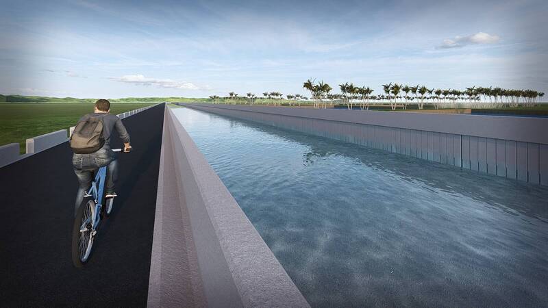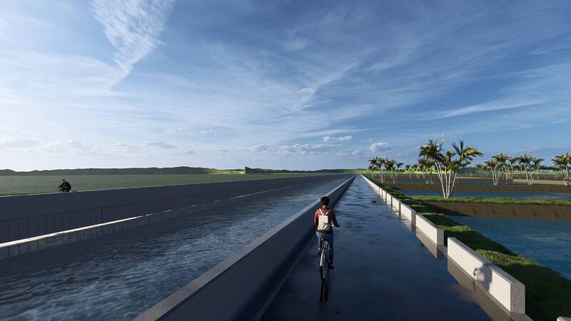 東港大排第四期工程未來兩岸皆有水防道路。(屏縣府提供)