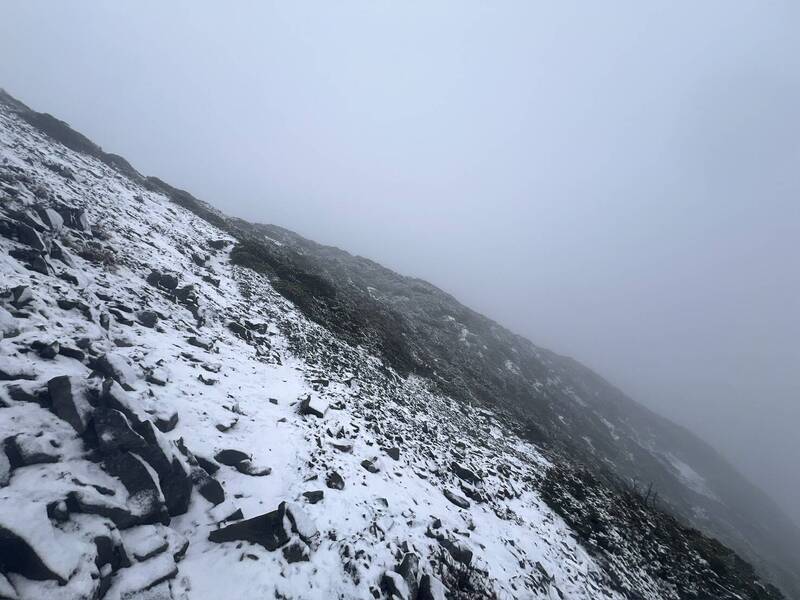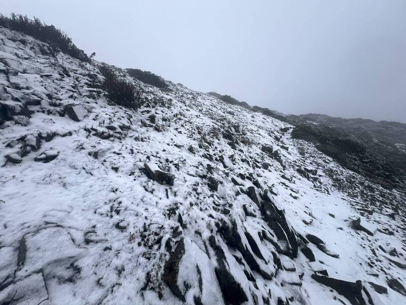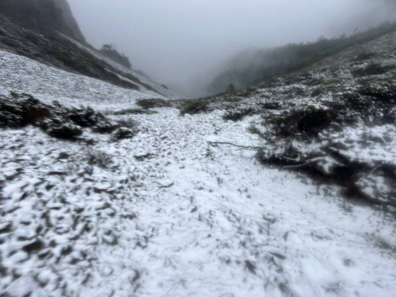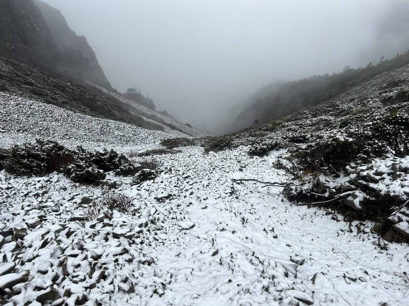 今年入冬後繼玉山下雪,雪霸國家公園管理處今天下午指出,經山友回報今(20日)早上7點多,由雪北山屋經水源路碎石坡行走路段中,拍攝到雪霸入冬初雪畫面,不過下雪時間不長,目前積雪約1公分。