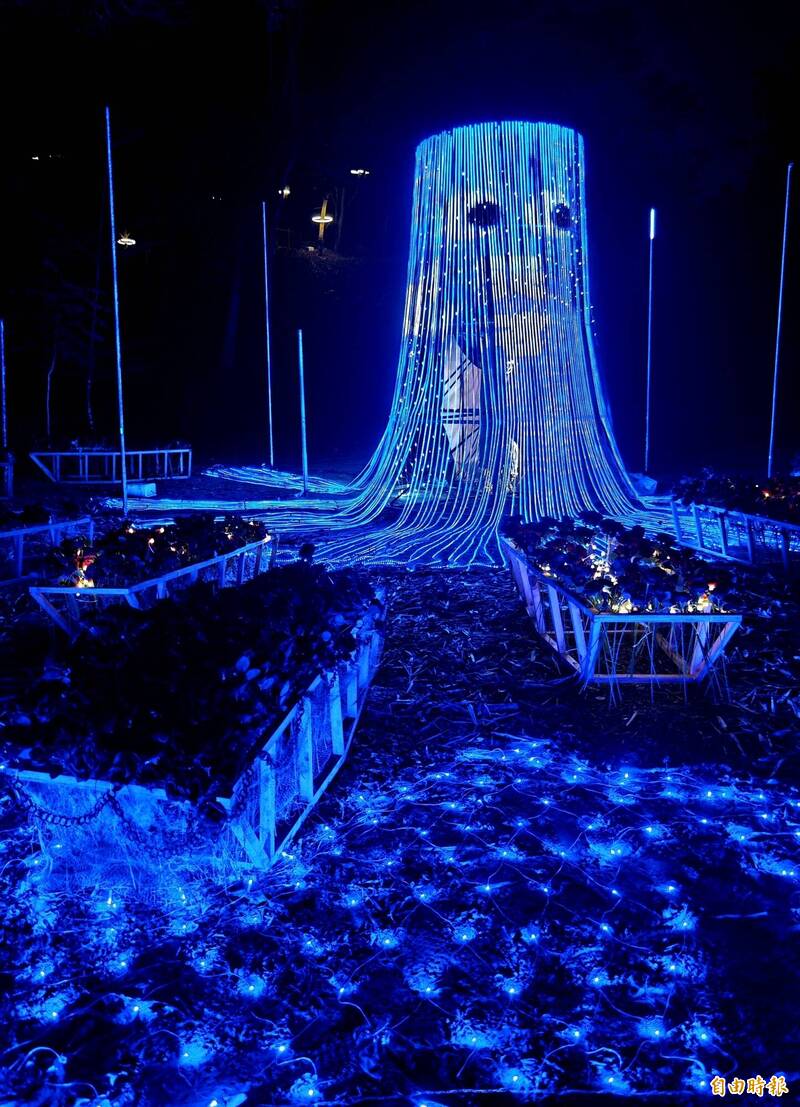 龍崎空山祭耶誕夜開幕,知名藝術家陳普的《聲波花》作品。(記者吳俊鋒攝)