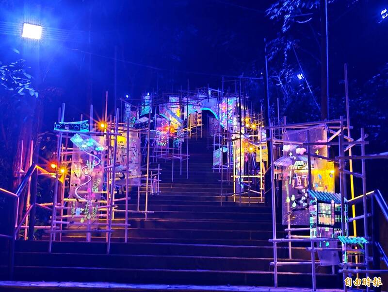 龍崎空山祭耶誕夜開幕,知名藝術家郭一勤、林秀慧的《圖境微光》作品。(記者吳俊鋒攝)