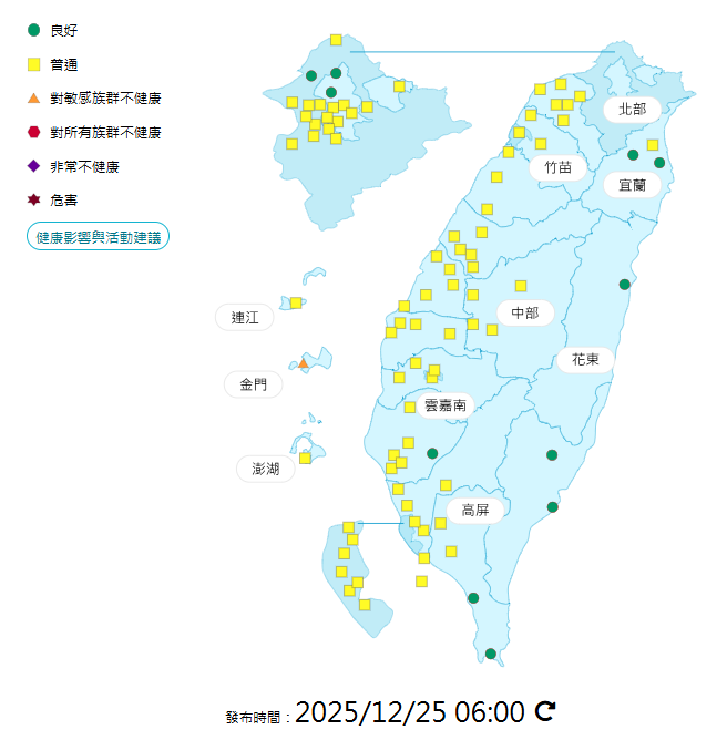 今日各地空氣品質概況。(圖擷自環境部空氣品質監測網)