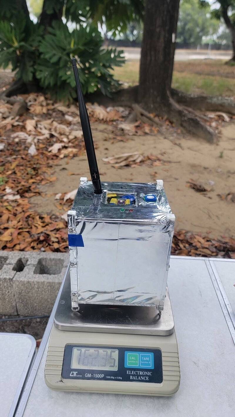 國立成功大學自主開發研製的1.5U教學立方衛星首次隨探空氣球升空,進行平流層近太空飛行驗證。(成大提供)