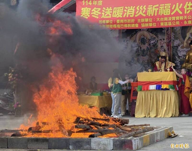0206地震後,永康凌霄寶殿武龍宮持續10年舉辦火供法會,消災祈福。(記者吳俊鋒攝)