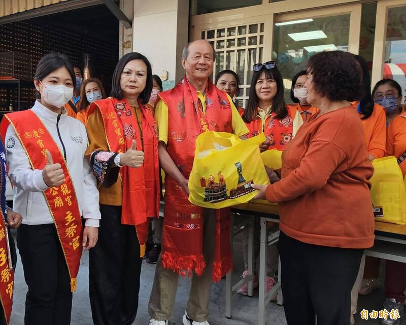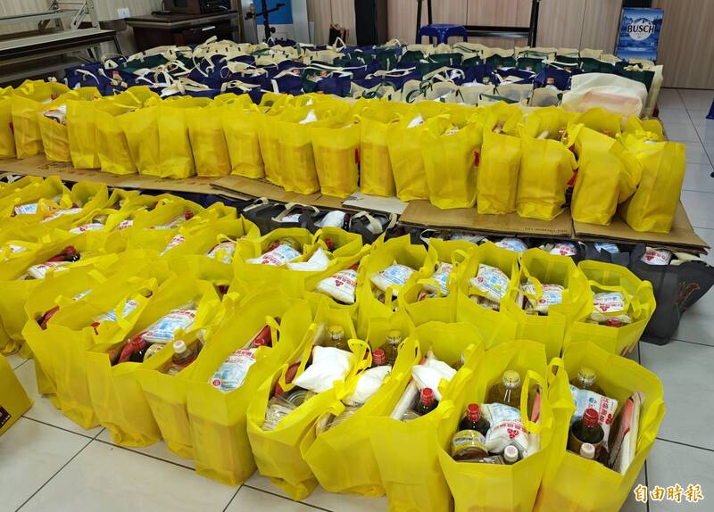 凌霄寶殿武龍宮準備了340份民生物資,發放給永康、新化、東區等地的弱勢。(記者吳俊鋒攝)