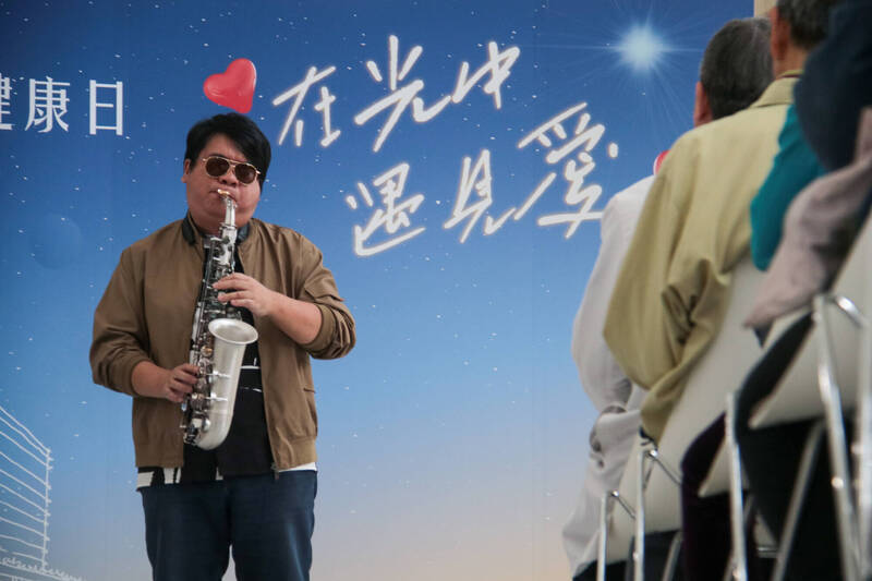 輔大校友、薩克斯風音樂家張林峯現場演出,以音樂分享生命故事。(輔大醫院提供)