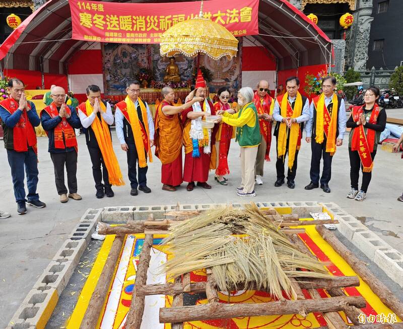 永康凌霄寶殿武龍宮舉辦火供法會,祈福迎新。(記者吳俊鋒攝)