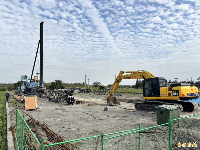 彰品公司準備興建大型風機,多項大型機具進場。(記者顏宏駿攝)