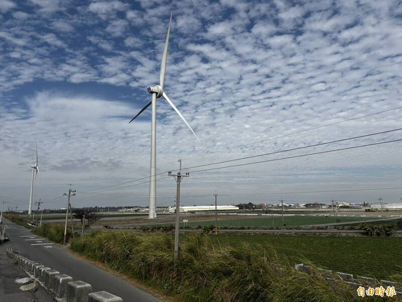 大城鄉多支大型風機靠近村落。(記者顏宏駿攝)
