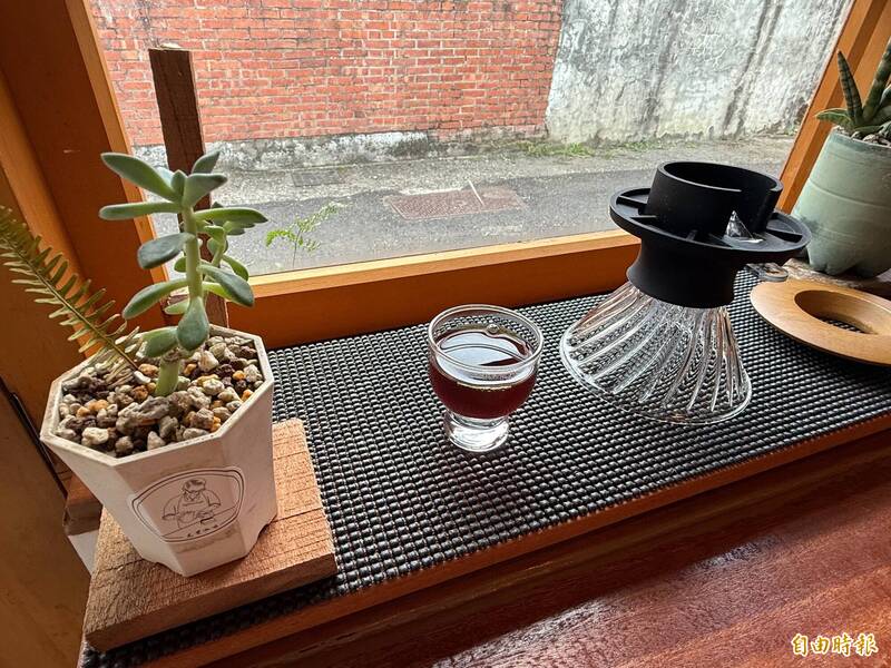「光覺咖啡」還設立手沖交流專區,讓訪客依照流程教學體驗手沖樂趣。(記者王峻祺攝)