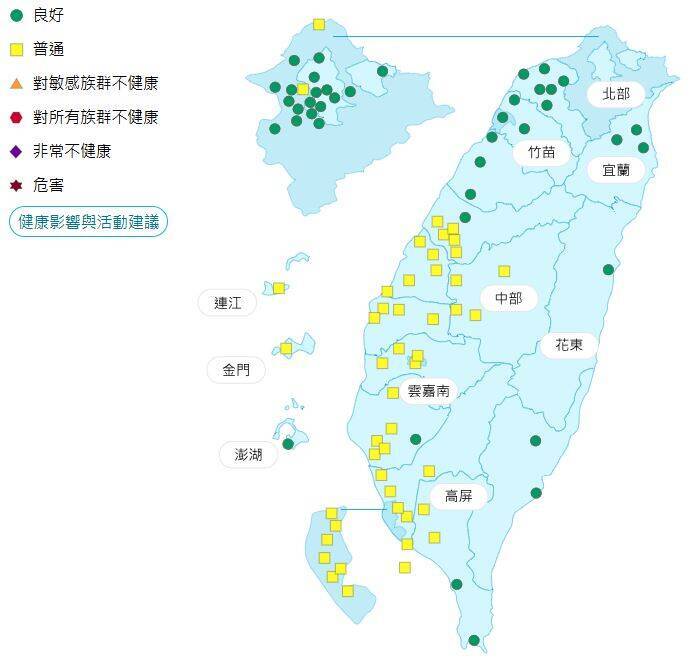 今日各地空氣品質概況。(圖擷取自環保署空氣品質監測網)