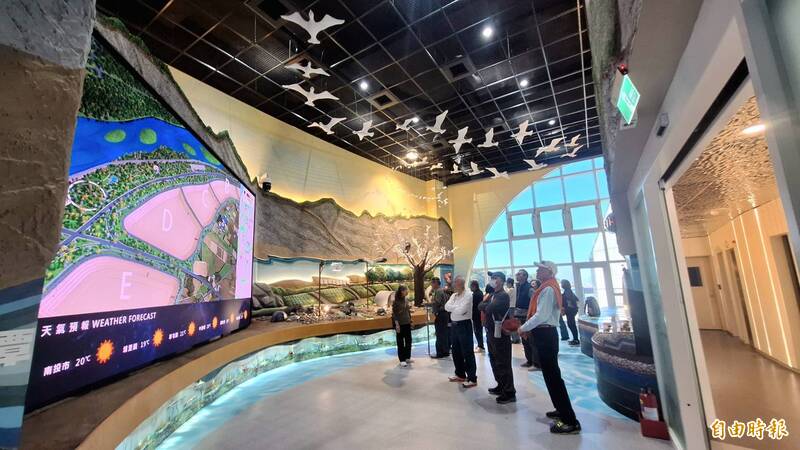 鳥嘴潭人工湖水資源教育館,設有環境生態AR擴增實境互動體驗。(記者張協昇攝)