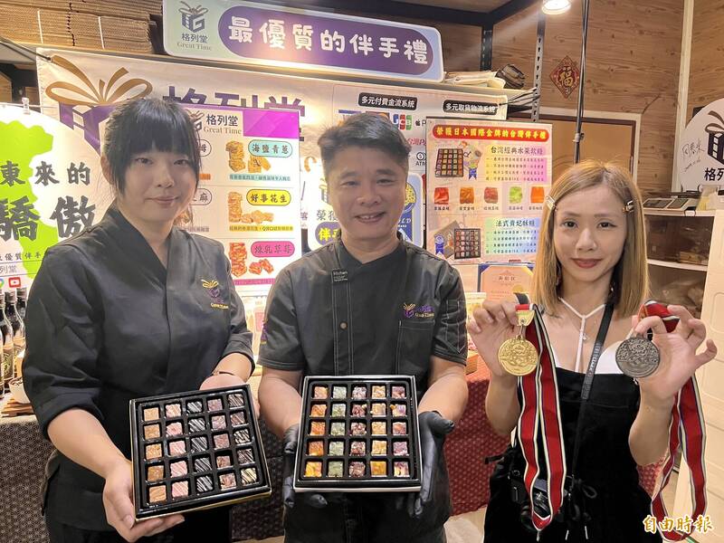 萬丹返鄉青年們研發的產品在日本國際伴手禮競賽中抱回金牌和銀牌。(記者羅欣貞攝)