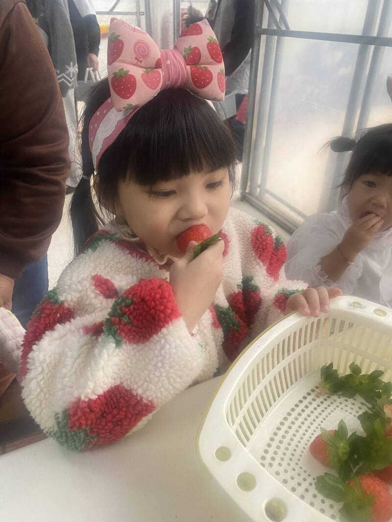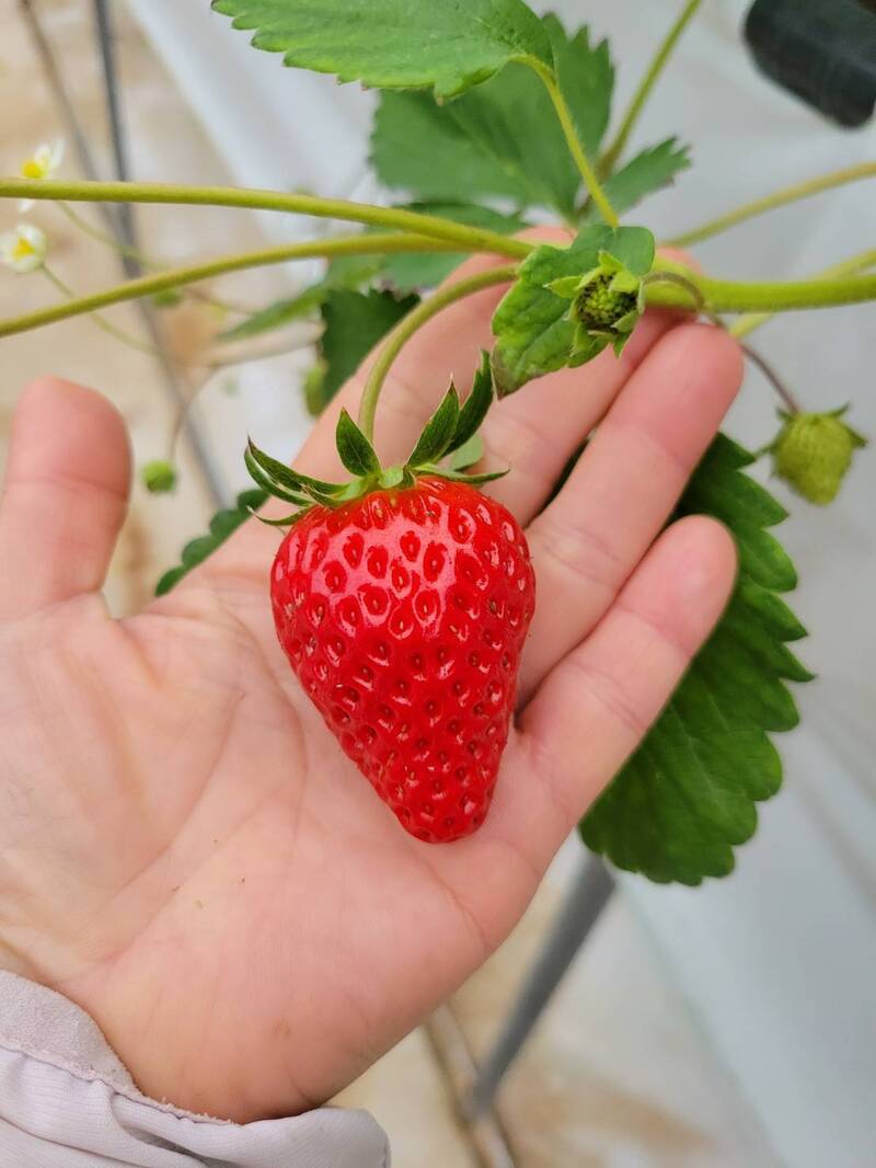 桃園市草莓栽種以溫網室為主,不受天候影響,採果同時也能體驗各式草莓diy活動,以及創意草莓產品。(桃市府農業局提供)