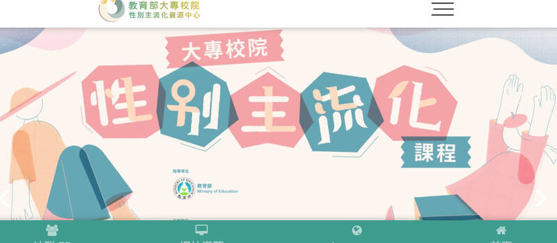 教育部委託台大人口與性別研究中心設置「大專校院性別主流化資源中心」,推動性別主流化課程等。(翻攝自官網)