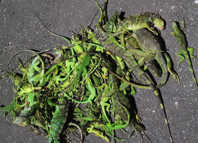 南市去年共捕捉2萬6000多隻綠鬣蜥,比前一年的1萬2000多隻增加1倍多。(南市農業局提供)