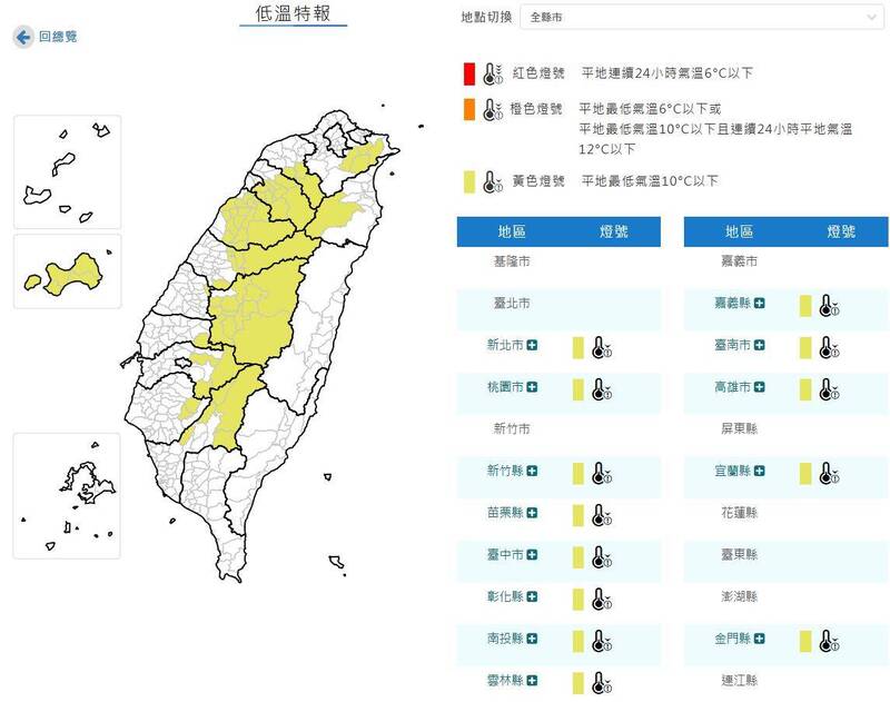 氣象署發布低溫特報。(圖擷取自中央氣象署)